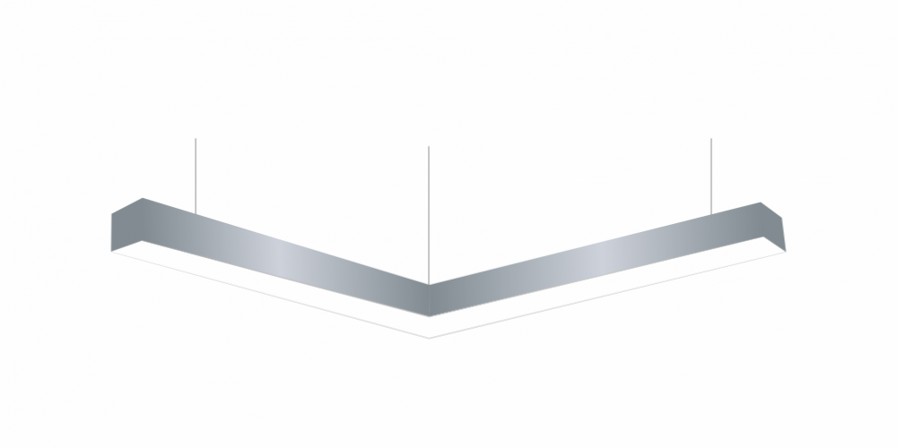 Светодиодный Угловой светильник LiNE-Pro 120гр. 750х750mm 30W 5000K серый предназначен для накладного или подвесного монтажа на тросовые подвесы. Изготовлен из сплошного сварного алюминиевого профиля в виде угла под 120 градусов. Высота установки светильника регулируется подвесом с цанговым тросовым зажимом и может варьироваться от 0,05 метра до 4 метров от основного потолка. Светильник имеет равномерную засветку по всей площади рассеивателя. Источник питания находится внутри корпуса. Торцевые заглушки входят в комплект. Возможно изготовление светильника с магистральной проводкой для соединения нескольких светильников в сплошную конструкцию.