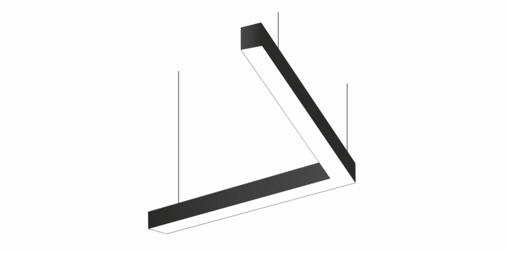 Светодиодный Угловой светильник LiNE-Pro 90гр. 1000х1000mm 40W 3000K черный предназначен для накладного или подвесного монтажа на тросовые подвесы. Изготовлен из сплошного сварного алюминиевого профиля в виде угла под 90 градусов. Высота установки светильника регулируется подвесом с цанговым тросовым зажимом и может варьироваться от 0,05 метра до 4 метров от основного потолка. Светильник имеет равномерную засветку по всей площади рассеивателя. Источник питания находится внутри корпуса. Торцевые заглушки входят в комплект. Возможно изготовление светильника с магистральной проводкой для соединения нескольких светильников в сплошную конструкцию.