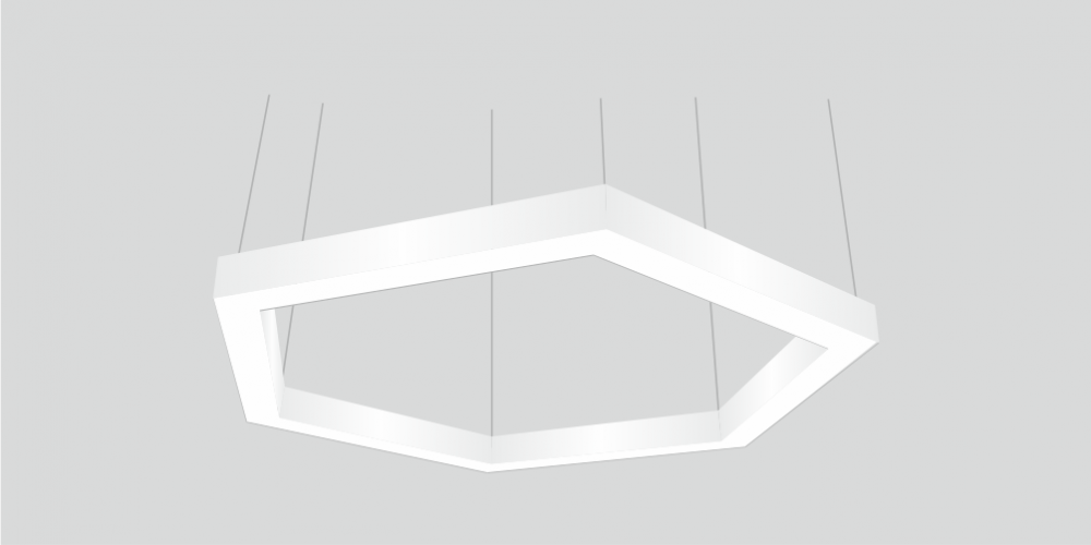 Светодиодный Шестиугольный светильник LiNE-Pro 6х250mm 30W 4000K белый предназначен для накладного или подвесного монтажа на тросовые подвесы. Изготовлен из сплошного сварного алюминиевого профиля в виде шестиугольника. Высота установки светильника регулируется подвесом с цанговым тросовым зажимом и может варьироваться от 0,05 метра до 4 метров от основного потолка. Шестиугольный линейный светильник имеет равномерную засветку по всей площади рассеивателя. Источник питания находится внутри корпуса.