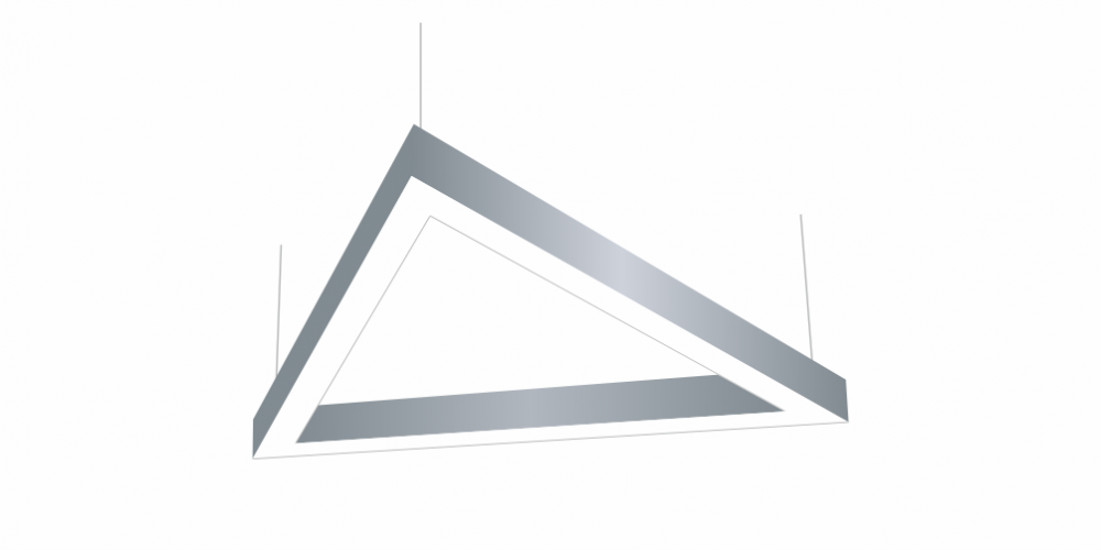 Светодиодный Треугольный светильник LiNE-Pro 3х500mm 60W 6000K серый предназначен для накладного или подвесного монтажа на тросовые подвесы. Изготовлен из сплошного сварного алюминиевого профиля в виде равностороннего треугольника. Высота установки светильника регулируется подвесом с цанговым тросовым зажимом и может варьироваться от 0,05 метра до 4 метров от основного потолка. Треугольный светильник имеет равномерную засветку по всей площади рассеивателя. Источник питания находится внутри корпуса.