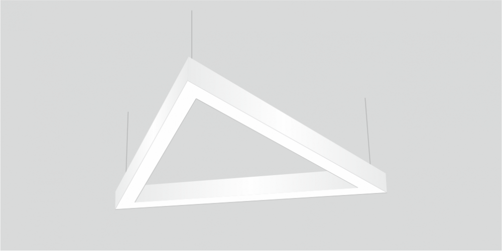 Светодиодный Треугольный светильник LiNE-Pro 3х750mm 40W 3000K белый предназначен для накладного или подвесного монтажа на тросовые подвесы. Изготовлен из сплошного сварного алюминиевого профиля в виде равностороннего треугольника. Высота установки светильника регулируется подвесом с цанговым тросовым зажимом и может варьироваться от 0,05 метра до 4 метров от основного потолка. Треугольный светильник имеет равномерную засветку по всей площади рассеивателя. Источник питания находится внутри корпуса.
