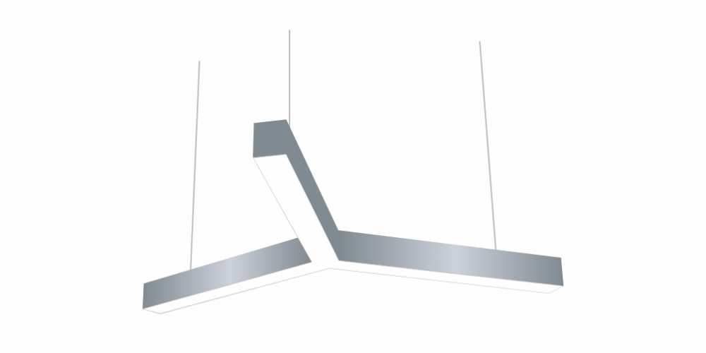 Светодиодный Лучевой светильник LiNE-Pro 3х500mm 30W 4000K серый предназначен для накладного или подвесного монтажа на тросовые подвесы. Изготовлен из сплошного сварного алюминиевого профиля в виде буквы «Y». Высота установки светильника регулируется подвесом с цанговым тросовым зажимом и может варьироваться от 0,05 метра до 4 метров от основного потолка. Светильник имеет равномерную засветку по всей площади рассеивателя. Источник питания находится внутри корпуса. Торцевые заглушки входят в комплект. Возможно изготовление светильника с магистральной проводкой для соединения нескольких светильников в сплошную конструкцию.