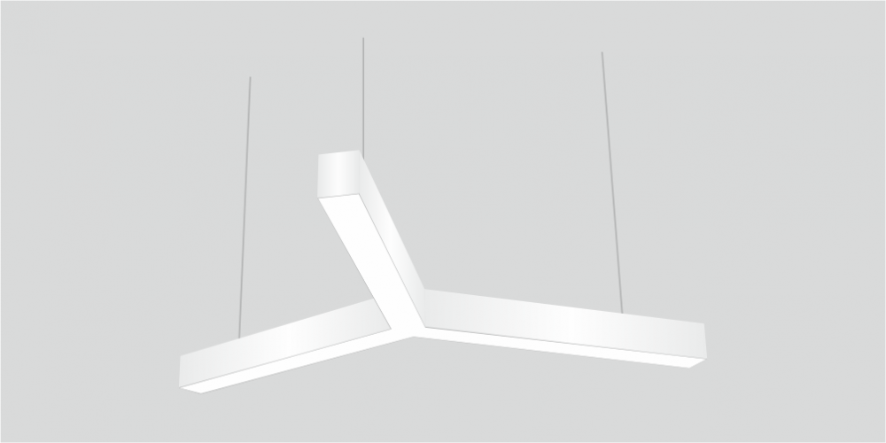 Светодиодный Лучевой светильник LiNE-Pro 3х500mm 60W 6000K белый предназначен для накладного или подвесного монтажа на тросовые подвесы. Изготовлен из сплошного сварного алюминиевого профиля в виде буквы «Y». Высота установки светильника регулируется подвесом с цанговым тросовым зажимом и может варьироваться от 0,05 метра до 4 метров от основного потолка. Светильник имеет равномерную засветку по всей площади рассеивателя. Источник питания находится внутри корпуса. Торцевые заглушки входят в комплект. Возможно изготовление светильника с магистральной проводкой для соединения нескольких светильников в сплошную конструкцию.