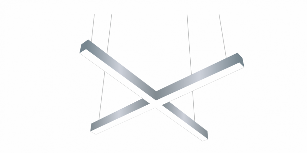 Светодиодный Лучевой светильник LiNE-Pro 4х500mm 40W 6000K серый предназначен для накладного или подвесного монтажа на тросовые подвесы. Изготовлен из сплошного сварного алюминиевого профиля в виде буквы «Х» (крестом). Высота установки светильника регулируется подвесом с цанговым тросовым зажимом и может варьироваться от 0,05 метра до 4 метров от основного потолка. Крестовой светильник имеет равномерную засветку по всей площади рассеивателя. Источник питания находится внутри корпуса. Торцевые заглушки входят в комплект. Возможно изготовление светильника с магистральной проводкой для соединения нескольких светильников в сплошную конструкцию.