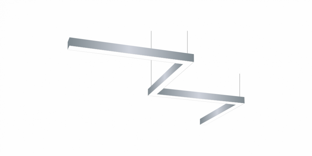 Фигурный светодиодный Светильник Зигзаг LiNE-Pro 4х500mm 40W 6000K серый предназначен для накладного или подвесного монтажа на тросовые подвесы. Изготовлен из сплошного сварного алюминиевого профиля в виде зигзага. Высота установки светильника регулируется подвесом с цанговым тросовым зажимом и может варьироваться от 0,05 метра до 4 метров от основного потолка. Светильник Зигзаг имеет равномерную засветку по всей площади рассеивателя. Источник питания находится внутри корпуса. Торцевые заглушки входят в комплект. Возможно изготовление светильника с магистральной проводкой для соединения нескольких светильников в сплошную конструкцию