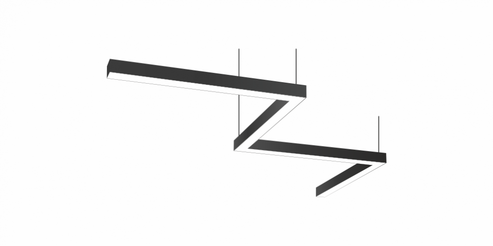 Фигурный светодиодный Светильник Зигзаг LiNE-Pro 4х500mm 80W 5000K черный предназначен для накладного или подвесного монтажа на тросовые подвесы. Изготовлен из сплошного сварного алюминиевого профиля в виде зигзага. Высота установки светильника регулируется подвесом с цанговым тросовым зажимом и может варьироваться от 0,05 метра до 4 метров от основного потолка. Светильник Зигзаг имеет равномерную засветку по всей площади рассеивателя. Источник питания находится внутри корпуса. Торцевые заглушки входят в комплект. Возможно изготовление светильника с магистральной проводкой для соединения нескольких светильников в сплошную конструкцию