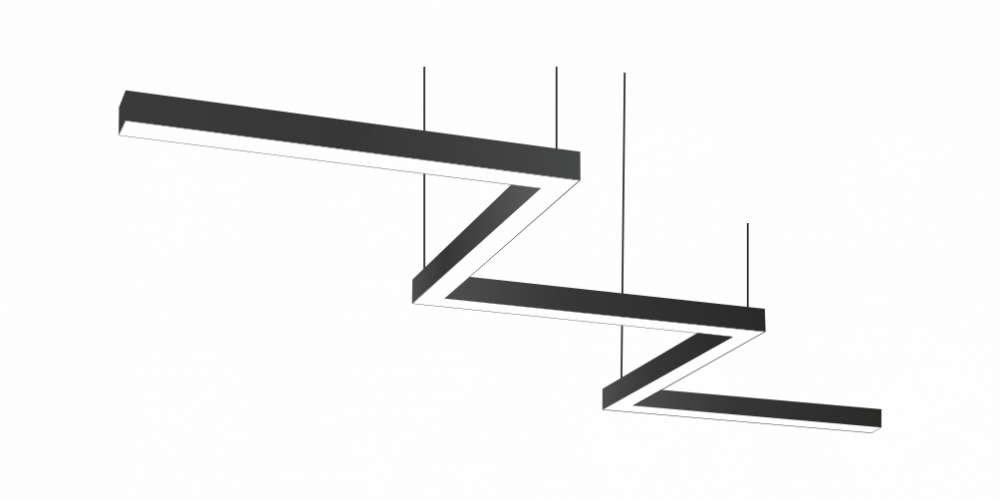 Фигурный светодиодный Светильник Зигзаг LiNE-Pro 5х500mm 90W 3000K черный предназначен для накладного или подвесного монтажа на тросовые подвесы. Изготовлен из сплошного сварного алюминиевого профиля в виде зигзага. Высота установки светильника регулируется подвесом с цанговым тросовым зажимом и может варьироваться от 0,05 метра до 4 метров от основного потолка. Светильник Зигзаг имеет равномерную засветку по всей площади рассеивателя. Источник питания находится внутри корпуса. Торцевые заглушки входят в комплект. Возможно изготовление светильника с магистральной проводкой для соединения нескольких светильников в сплошную конструкцию