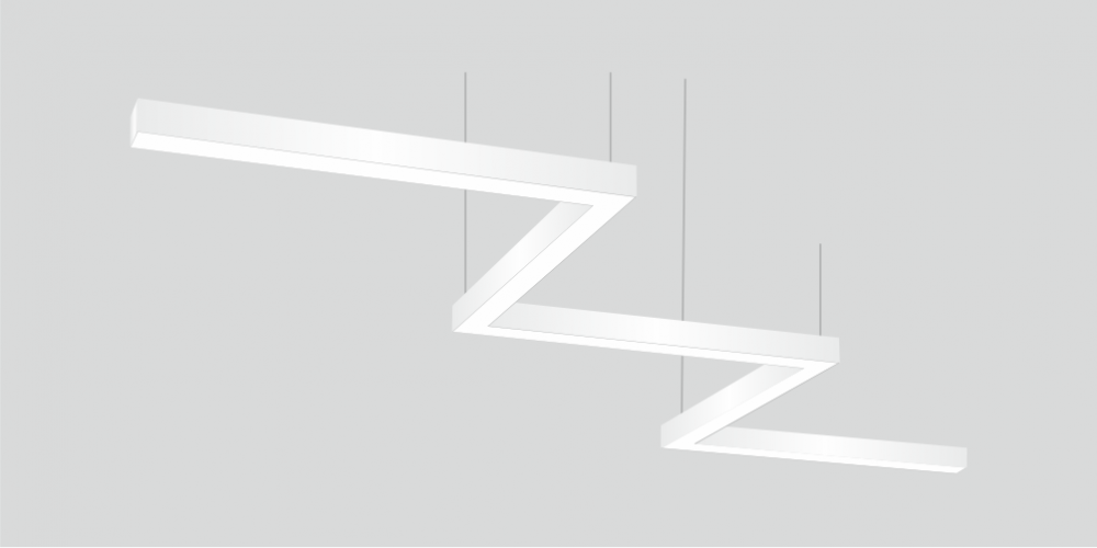 Фигурный светодиодный Светильник Зигзаг LiNE-Pro 5х500mm 90W 5000K белый предназначен для накладного или подвесного монтажа на тросовые подвесы. Изготовлен из сплошного сварного алюминиевого профиля в виде зигзага. Высота установки светильника регулируется подвесом с цанговым тросовым зажимом и может варьироваться от 0,05 метра до 4 метров от основного потолка. Светильник Зигзаг имеет равномерную засветку по всей площади рассеивателя. Источник питания находится внутри корпуса. Торцевые заглушки входят в комплект. Возможно изготовление светильника с магистральной проводкой для соединения нескольких светильников в сплошную конструкцию