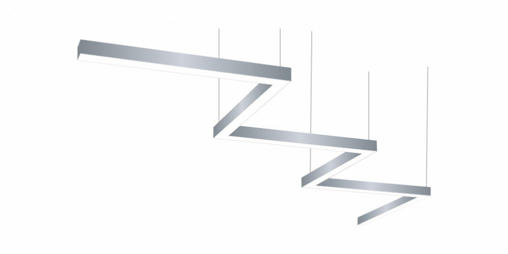 Фигурный светодиодный Светильник Зигзаг LiNE-Pro 6х500mm 120W 6000K серый предназначен для накладного или подвесного монтажа на тросовые подвесы. Изготовлен из сплошного сварного алюминиевого профиля в виде зигзага. Высота установки светильника регулируется подвесом с цанговым тросовым зажимом и может варьироваться от 0,05 метра до 4 метров от основного потолка. Светильник Зигзаг имеет равномерную засветку по всей площади рассеивателя. Источник питания находится внутри корпуса. Торцевые заглушки входят в комплект. Возможно изготовление светильника с магистральной проводкой для соединения нескольких светильников в сплошную конструкцию