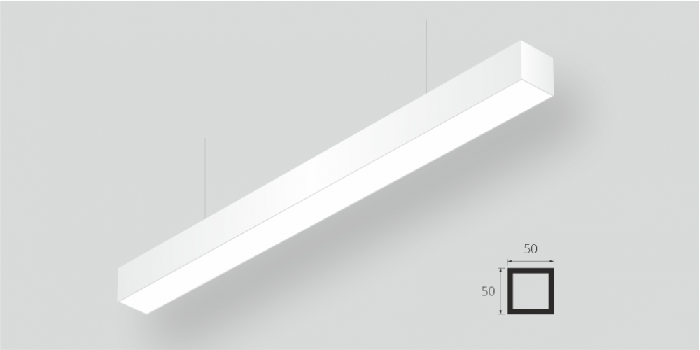 Линейный светодиодный Подвесной светильник LiNE-Pro 50x50 2500mm 115W 6000K Белый предназначен для подвесного монтажа на тросовые подвесы. Изготовлен из алюминиевого профиля длиной 2500 мм, мощностью 115 Вт c цветовой температурой 6000 K, цвет корпуса Белый. Высота установки светильника регулируется подвесом с цанговым тросовым зажимом и может варьироваться от 0,05 метра до 4 метров от основного потолка. Линейный светильник может использоваться для реечных потолков. Светильник имеет равномерную засветку по всей площади рассеивателя. Источник питания находится внутри корпуса. Торцевые заглушки входят в комплект.