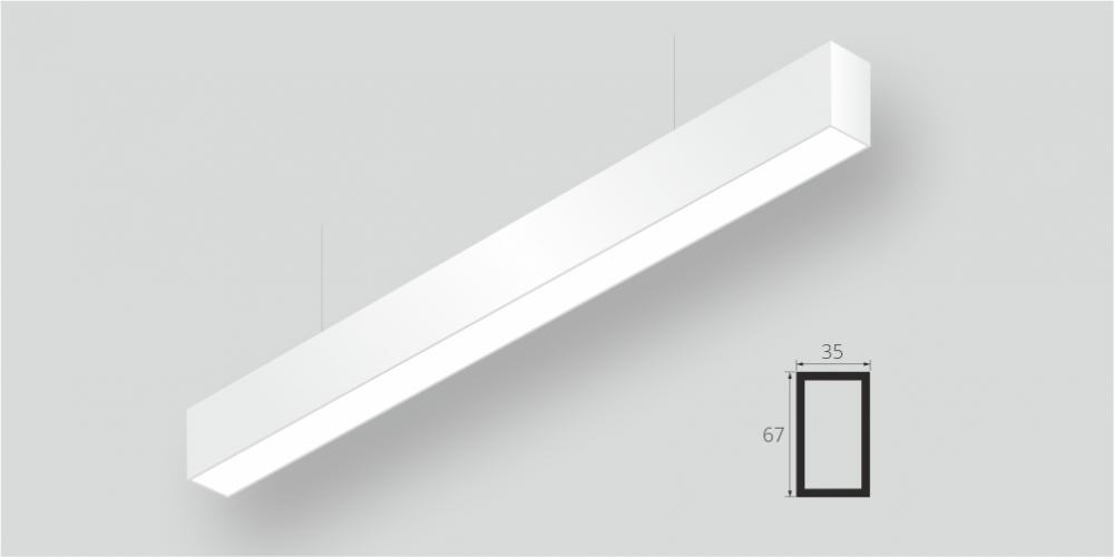 Линейный светодиодный Подвесной светильник LiNE-Pro 67x35 750mm 36W 3000K Белый предназначен для подвесного монтажа на тросовые подвесы. Изготовлен из алюминиевого профиля длиной 750 мм, мощностью 36 Вт c цветовой температурой 3000 K, цвет корпуса Белый. Высота установки светильника регулируется подвесом с цанговым тросовым зажимом и может варьироваться от 0,05 метра до 4 метров от основного потолка. Линейный светильник может использоваться для реечных потолков. Светильник имеет равномерную засветку по всей площади рассеивателя. Источник питания находится внутри корпуса. Торцевые заглушки входят в комплект.