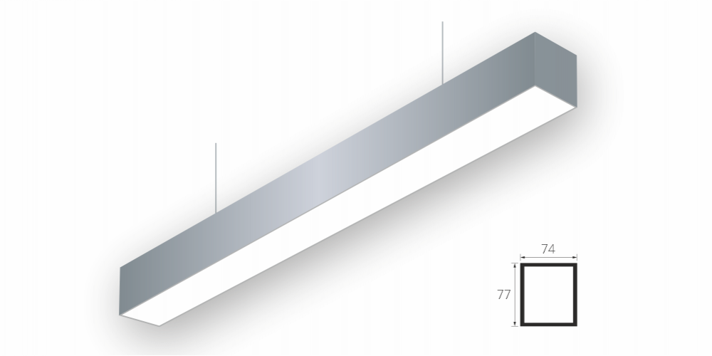 Линейный светодиодный Подвесной светильник LiNE-Pro 77x74 1000mm 20W 3000K Серый предназначен для подвесного монтажа на тросовые подвесы. Изготовлен из алюминиевого профиля длиной 1000 мм, мощностью 20 Вт c цветовой температурой 3000 K, цвет корпуса Серый. Высота установки светильника регулируется подвесом с цанговым тросовым зажимом и может варьироваться от 0,05 метра до 4 метров от основного потолка. Линейный светильник может использоваться для реечных потолков. Светильник имеет равномерную засветку по всей площади рассеивателя. Источник питания находится внутри корпуса. Торцевые заглушки входят в комплект.