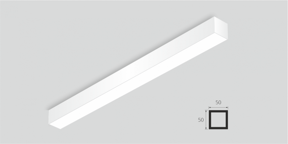 Линейный модульный светодиодный Накладной светильник LiNE-Pro 50x50 1250mm 57W 6000K Белый предназначен для накладного монтажа на ровную поверхность. Изготовлен из алюминиевого профиля длиной 1250 мм, мощностью 57 Вт c цветовой температурой 6000 K, цвет корпуса Белый. Светильники соединяются в сплошную линию с помощью комплекта линейного соединения и сплошной магистральной проводки. Светильник имеет равномерную засветку по всей площади рассеивателя. Источник питания находится внутри корпуса.